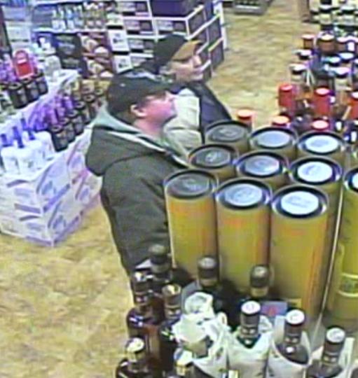 GRAND FORKS, ND (KFGO-AM) - Grand Forks police are looking for two male suspects following the theft of four bottles of liquor worth about $2,800.