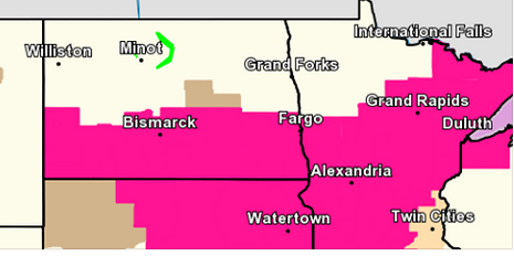 The National Weather Service has issued red flag warnings for all of southern North Dakota, into most of central, southern and northeastern Minnesota and parts of northern South Dakota. It includes Fargo and the southern Red River Valley. It stretches from Dickinson through Bismarck, Jamestown, down to Watertown, South Dakota and up into the Grand Rapids and Duluth areas of northeastern Minnesota.