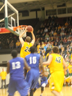 Head coach Steve Fisher took Thames out with just over 12 minutes to go in the game and at that point, Thames had accounted for 22 of the teams 42 points. It was an awesome display of offense. The Bison had no answer from him as he continued to come off screens and knock down mid-range jumpers.